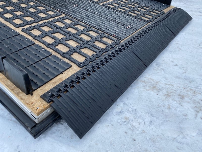 These innovative fold-down trailer door flaps utilize a design that not only creates a smooth transition between the ground and trailer door, but also has integrated grip nubs to provide boot traction and prevent slips. Flaps are 24” wide and 9” long, making them compatible with nearly all doors. Kit includes 4 flaps, stainless fasteners and rubber joiner links for easy installation. Includes a lifetime manufacturer’s warranty.