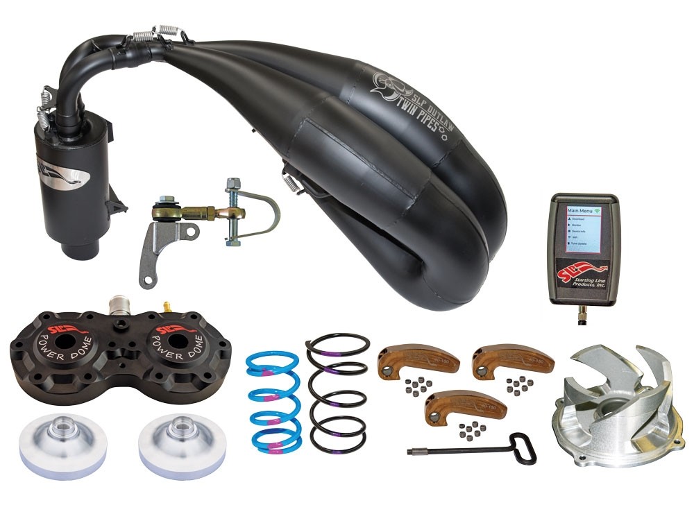 The toughest Outlaw on snow just got tougher and meaner! SLP Outlaw Stage 2 Kit combines the 17 horsepower delivered from our Outlaw Twin Pipes ™ with the phenomenal 5-7 horsepower mid-range and 6 horsepower peak performance of SLP Power Dome Billet Heads™ for a fierce combination. This added performance and instantaneous throttle response makes this kit ideal for the ultimate performance seeker. Kit also utilizes a Flash Tuner, Power Shift Clutch Kit™ and a Torque Arm.
